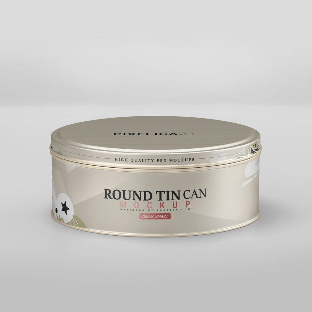 This Package includes 9 Small Round Tin Can PSD Mockups from different angles.